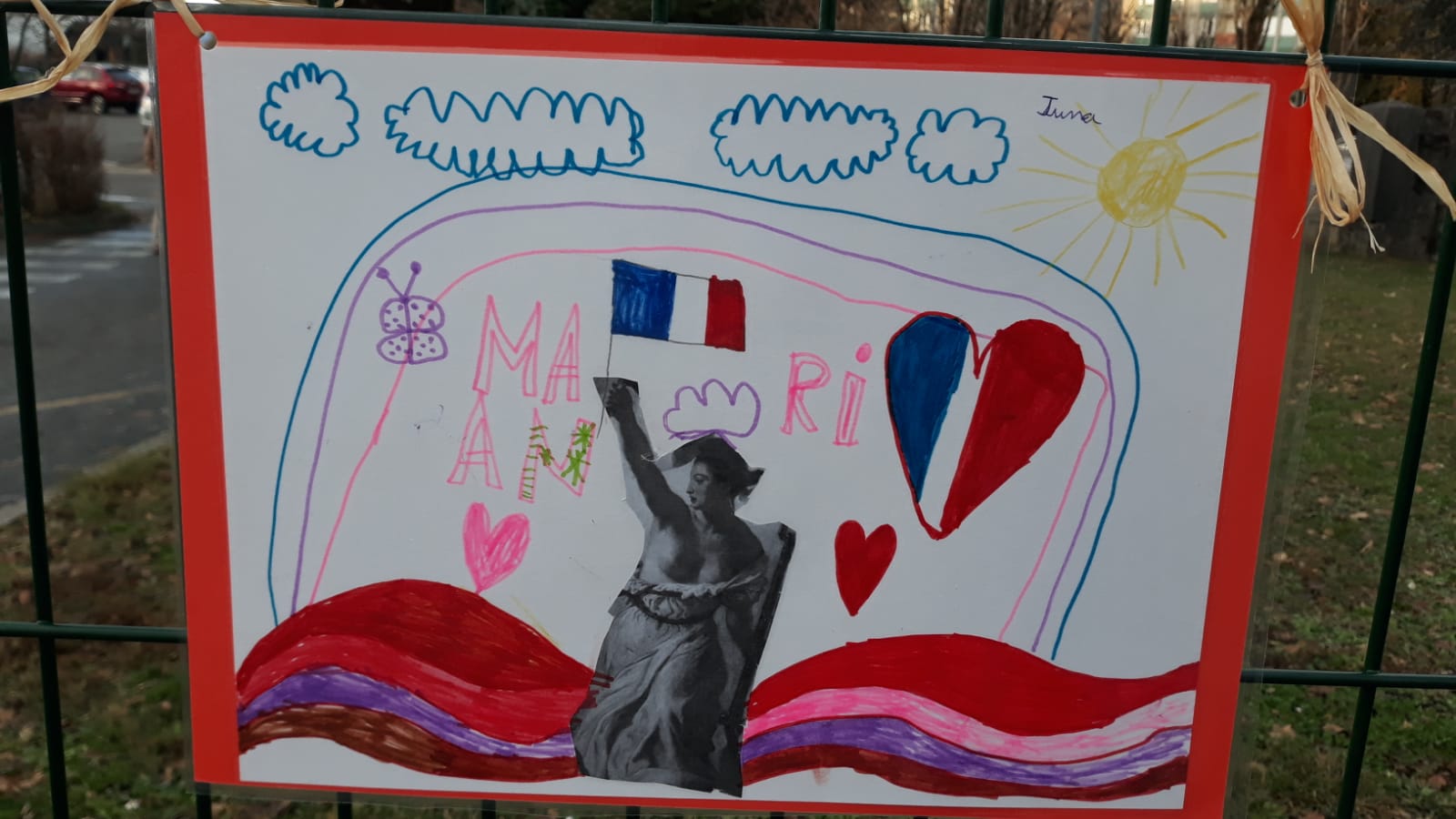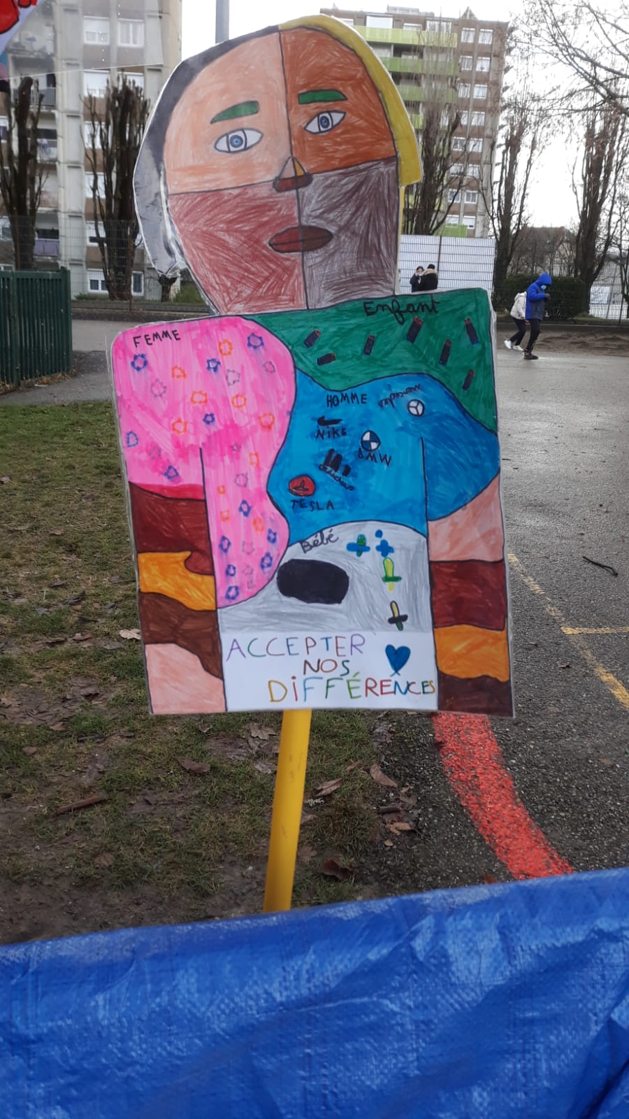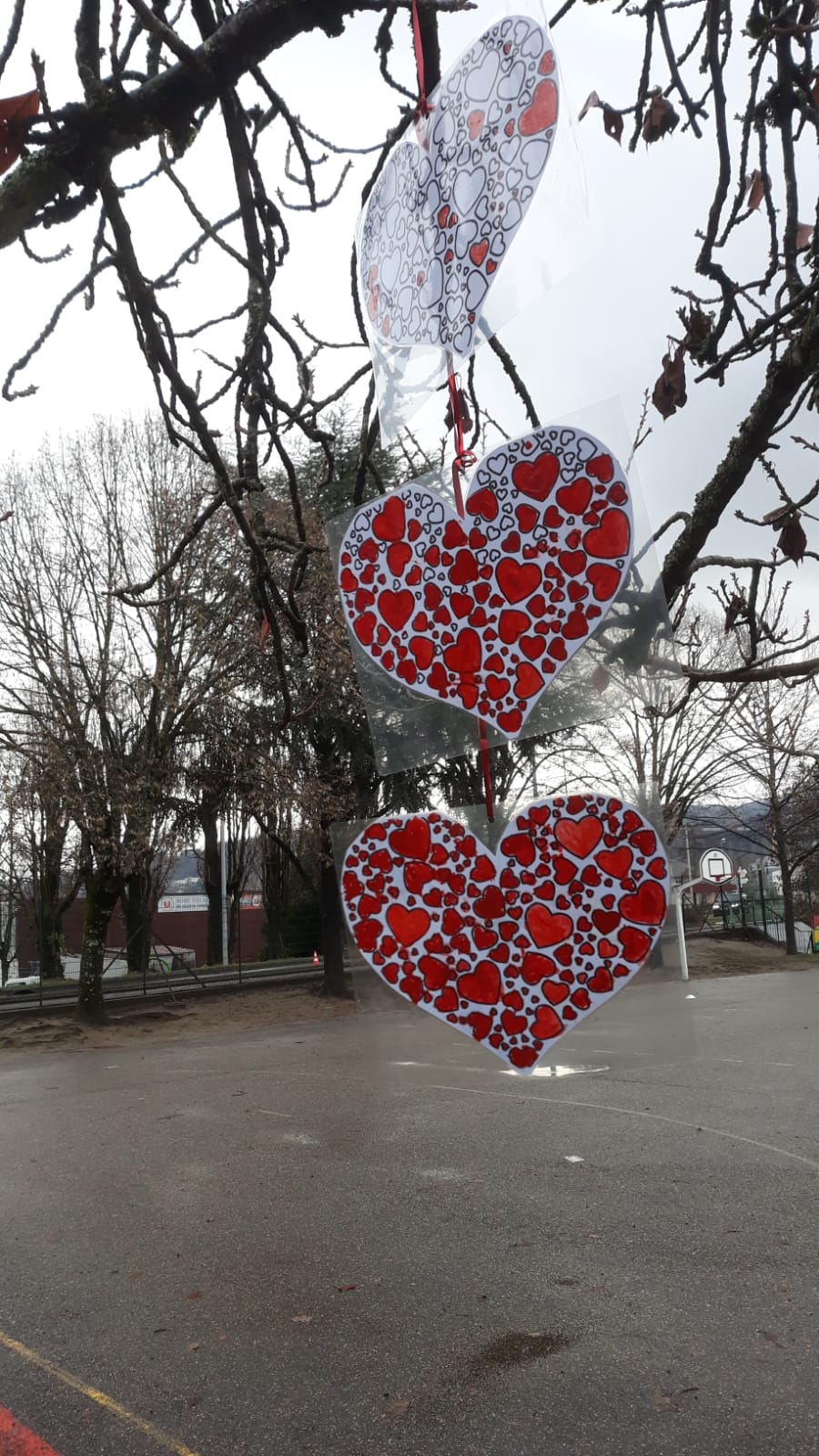 Les productions étant plastifiées ou vernis, elles resteront au moins jusqu'aux vacances dans la cour, permettant ainsi aux parents qui n'ont pu venir aujourd'hui de prendre connaissance du travail réalisé.