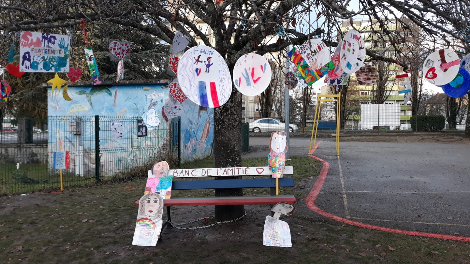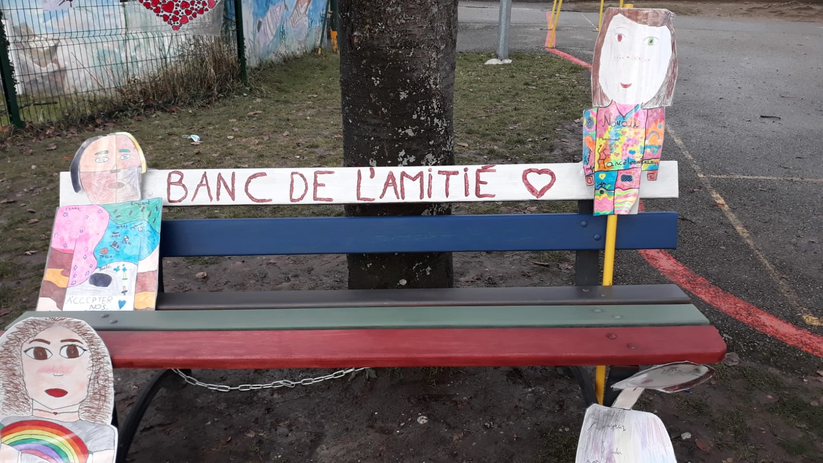Les élèves de CM ont également, lors de la récréation de 15h15, inauguré leur banc de l'amitié qui trône majestueusement au pied de cet arbre.